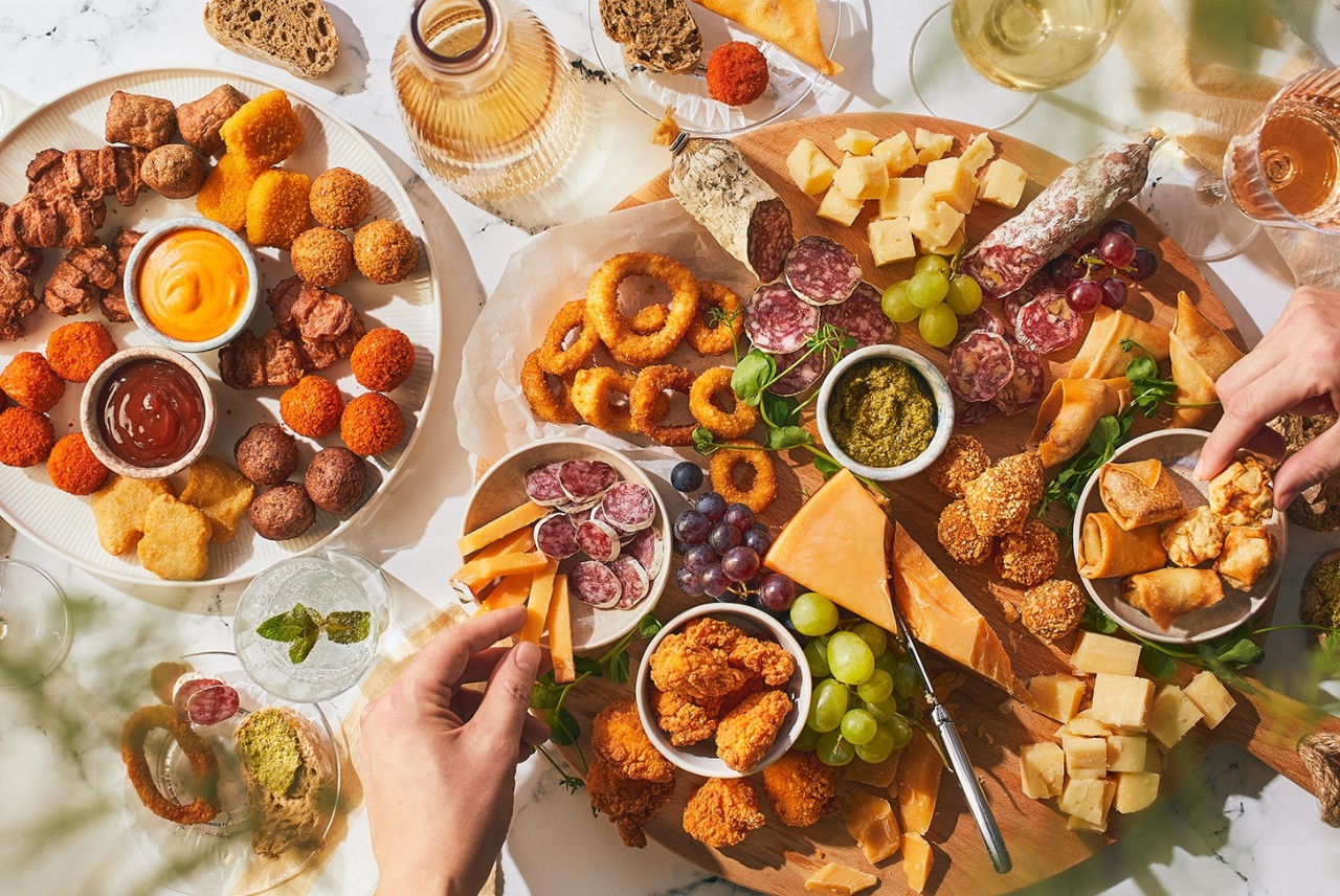 Heb je suggesties voor simpele en smaakvolle alternatieven voor vleeswaren op een borrelplank?