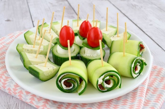 Een gezonde optie tussen al het lekkers zijn groentespiesjes. Rijg stukjes komkommer, paprika, cherrytomaatjes en radijsjes aan prikkers. Serveer de spiesjes met een frisse yoghurtdip op basis van Griekse yoghurt, knoflook en citroensap.